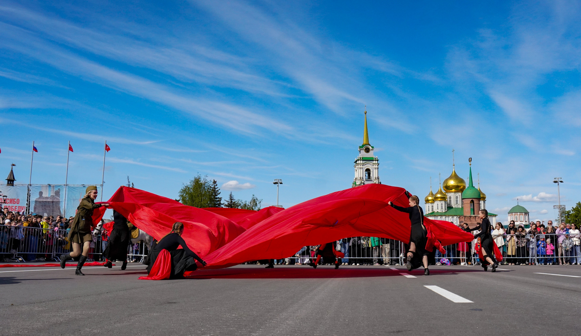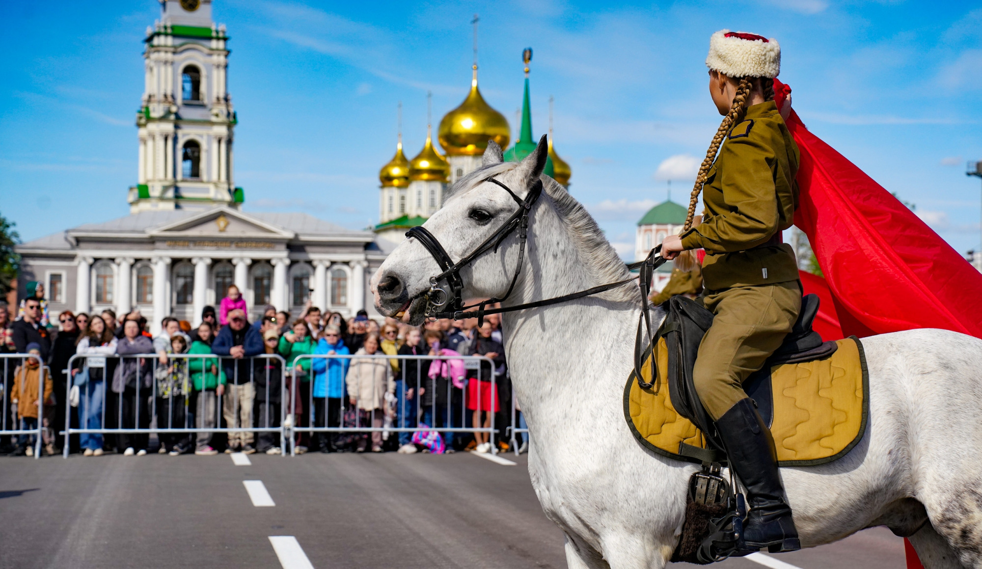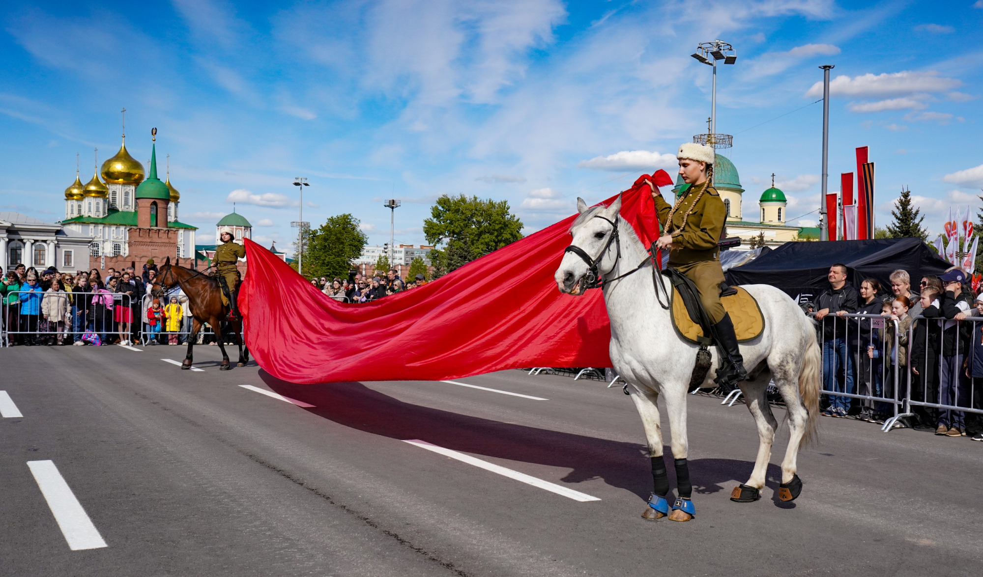 А прямо на площади были показаны хореографические номера под песни военных лет. Также туляки и гости оружейной столицы могли увидеть показательные выступления на лошадях.