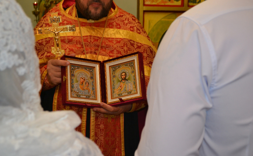 Таинство совершил иерей храма святого великомученика Георгия Победоносца отец Александр Суворин. Перед этим молодожены прошли подготовительный этап: исповедовались, причастились и побеседовали со священнослужителем. Сама церемония прошла в торжественной обстановке с золочеными венцами, венчальными свечами и рушником.