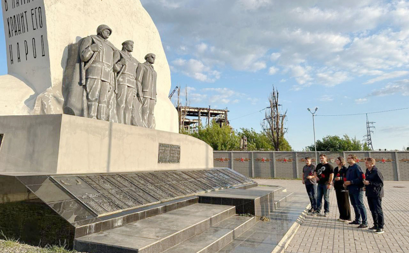 Они возложили цветы к памятнику азовстальцам, погибшим и пропавшим без вести в годы Великой Отечественной войны. Этот мемориал появился у проходных «Азовстали» в 1967 году и спустя годы был разрушен ВСУ. В прошлом году памятник восставили.