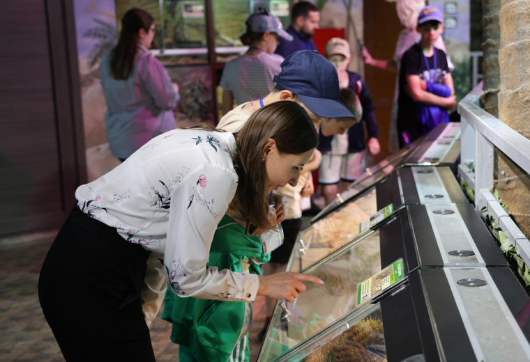 Следующей точкой маршрута стал Тульский экзотариум, где собрана одна из крупнейших в мире коллекций хладнокровных животных. Ребят там ждало настоящее приключение: дети с широко раскрытыми глазами рассматривали крокодила, огромного питона, черепах, а озорные сурикаты никого не оставили равнодушными.
