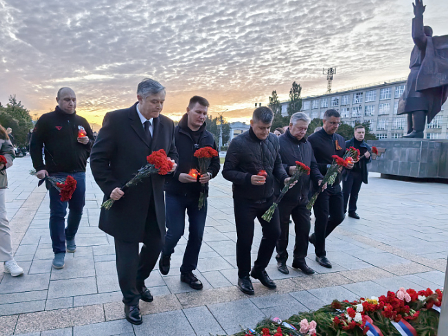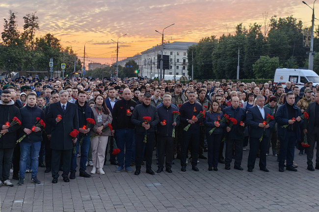 На площади Победы состоялся митинг. Участники акции почтили память павших защитников Родины минутой молчания. В завершение туляки возложили цветы и поставили лампады к Вечному огню и стелам городов-героев.