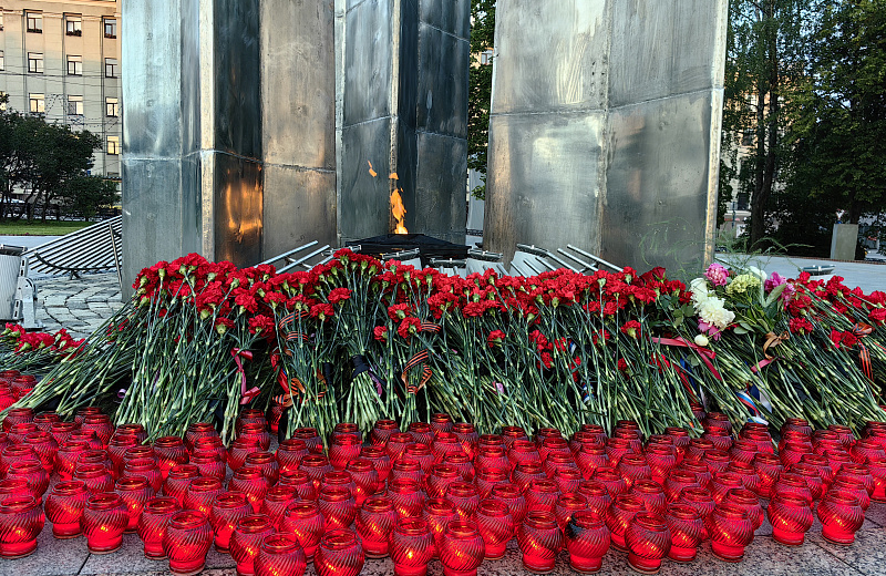 На площади Победы состоялся митинг. Участники акции почтили память павших защитников Родины минутой молчания. В завершение туляки возложили цветы и поставили лампады к Вечному огню и стелам городов-героев.