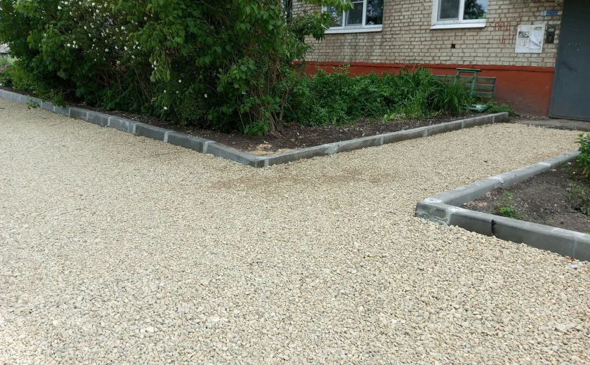 В каждом из дворов подрядчик убрал и вывез элементы, которые нужно было заменить, поставил новый бордюрный камень, а также засыпал щебень на тротуар, чтобы потом уложить на него асфальт. Помимо этого, во дворах появятся новые уличные фонари — опоры под них уже поставили.