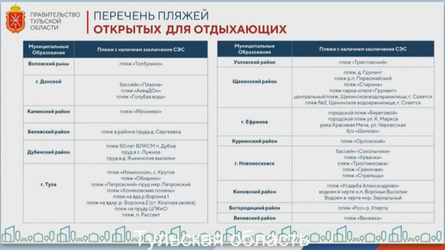 Сейчас уже полностью готовы 40 зон отдыха у воды. Среди них — популярные места в Туле и области.