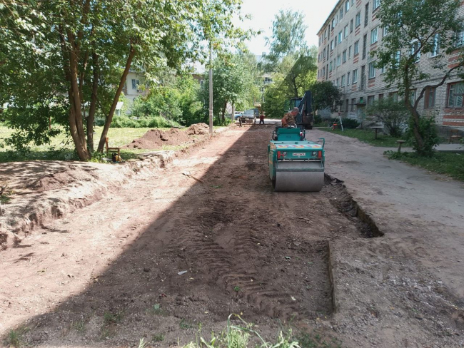 Участок обустраивают по программе «Формирование комфортной городской среды». Рабочие уже установили бордюры, а также работают над территорией парковки для жителей.