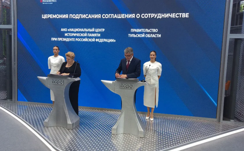 На Петербургском международном экономическом форуме (ПМЭФ) 19 июня губернатор Тульской области Дмитрий Миляев подписал соглашение с АНО «Национальный центр исторической памяти при Президенте Российской Федерации» в лице руководителя Елены Малышевой. Соглашение предполагает совместную работу регионального правительства и Центра по сохранению культуры и исторического наследия Тульской области.