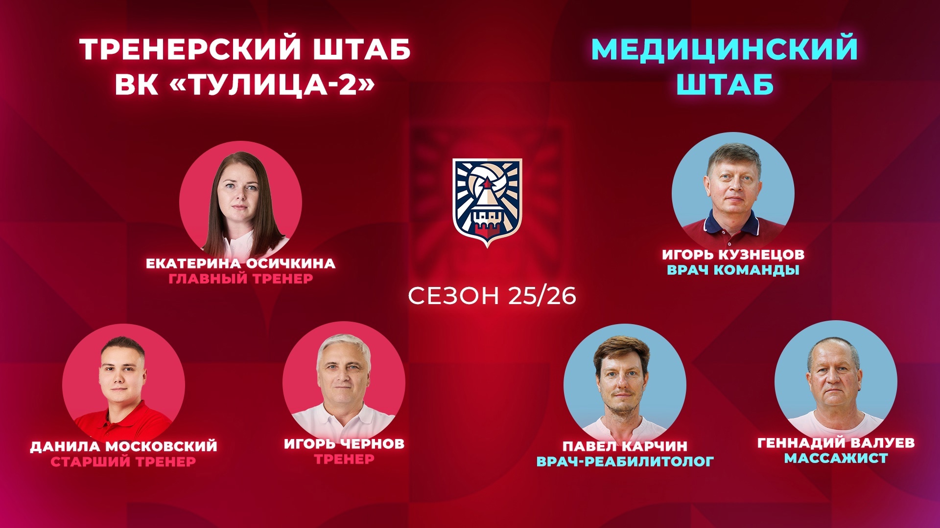 Волейбольная «Тулица» представила тренерский штаб на сезон 2025/26. Главный тренер — Алексей Лазневой. Старшим тренером стал Евгений Васильчук. О его приходе в клуб сообщили 5 июня.
