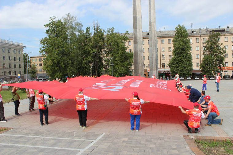 Присутствующие возложили к мемориалу цветы, память погибших почтили минутой молчания. В завершение мероприятия на площади Победы развернули копию штурмового Знамени Победы. Реликвия уже побывала Мурманске, Санкт-Петербурге, Смоленске, Бресте и Москве.