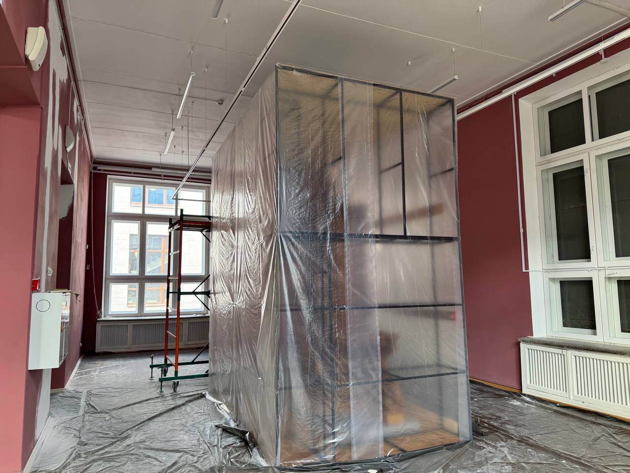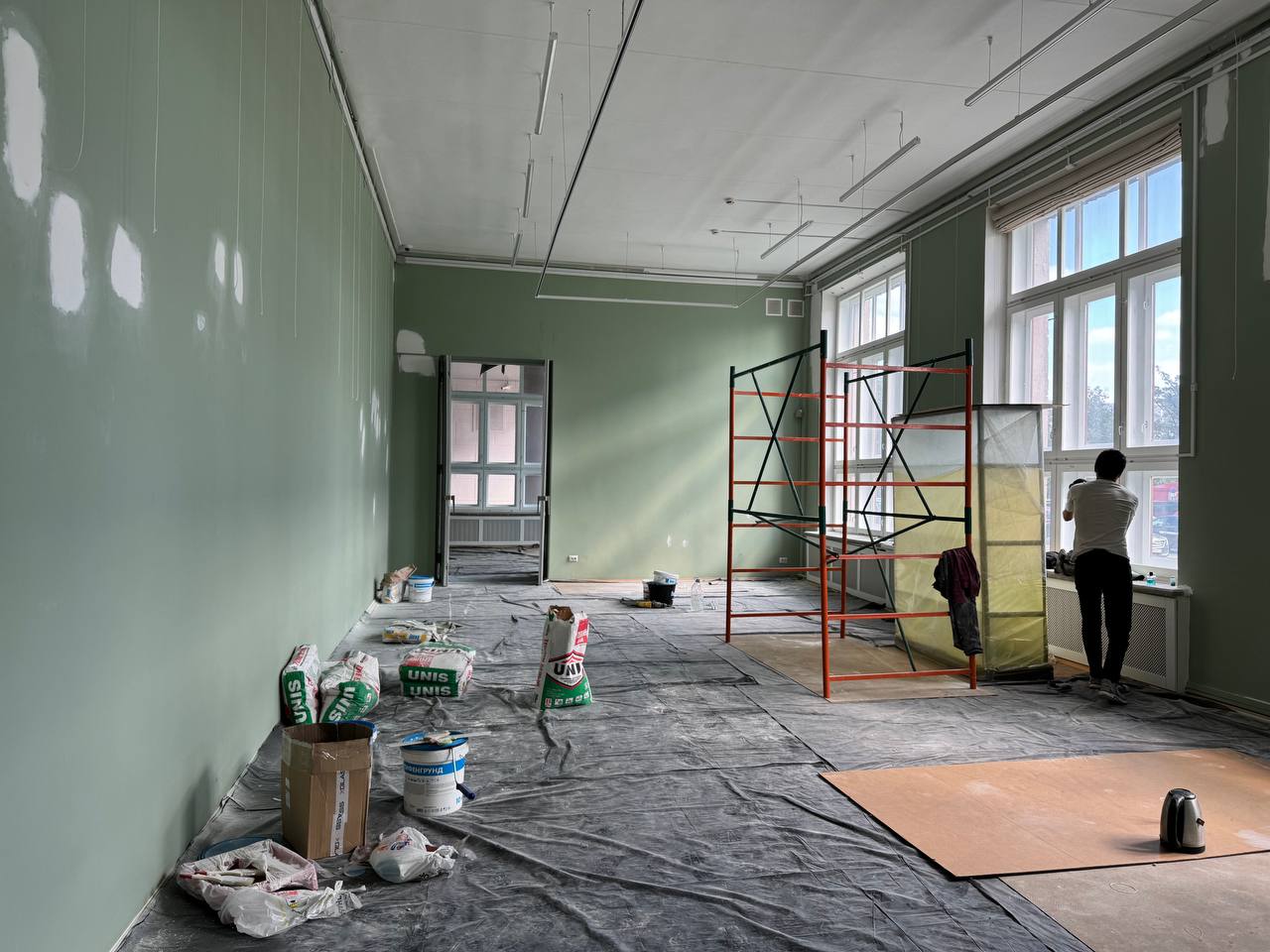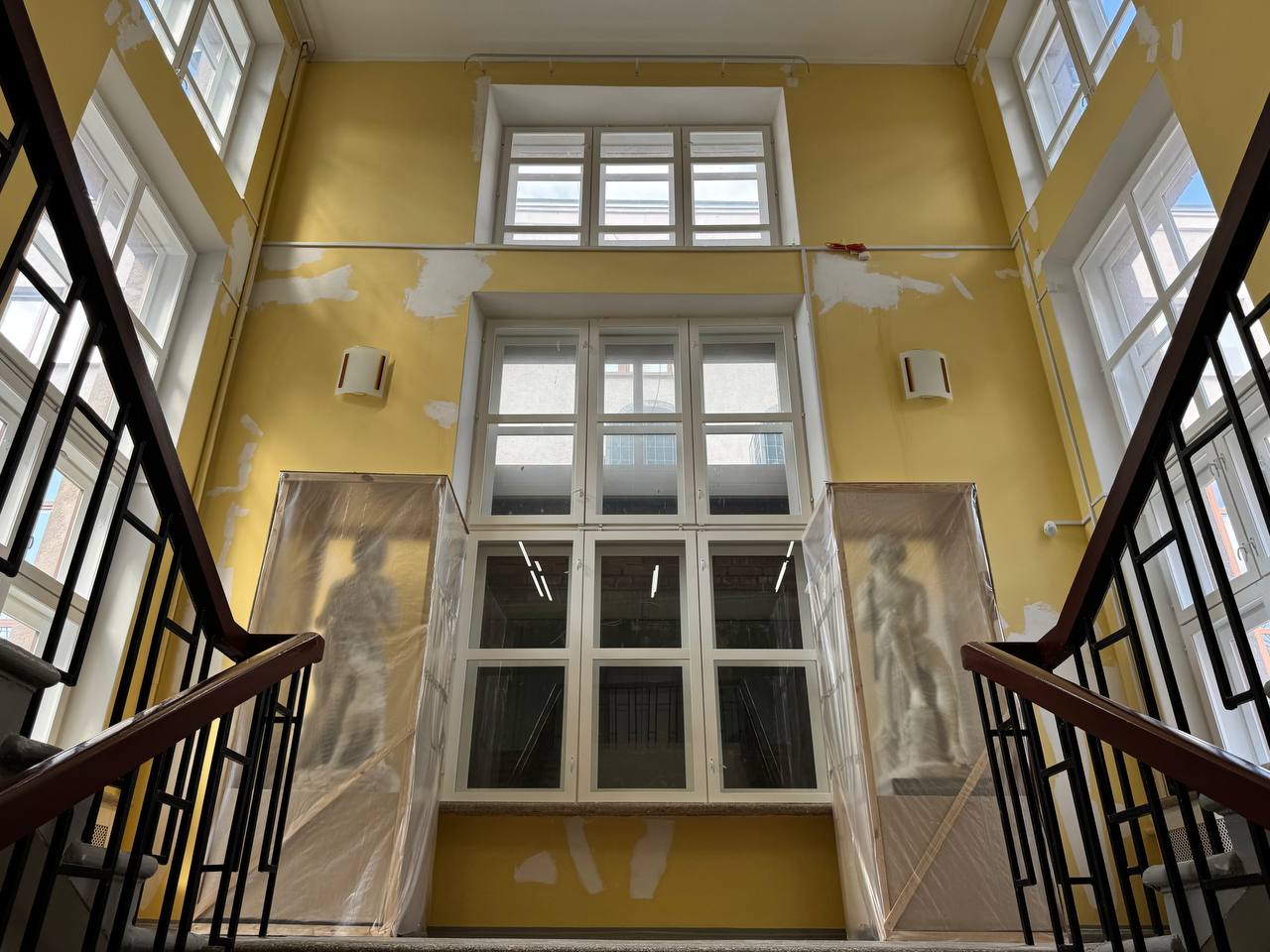 Как только были зафиксированы первые повреждения, специалисты начали мониторинг состояния трещин с помощью установленных маяков. После инженерных изысканий было решено укрепить грунты под фундаментом — эти работы завершены еще в сентябре 2023 года. Далее, убедившись, что деформации остановились, специалисты приступили ко второму этапу — восстановлению поврежденных конструкций и внутренней отделки.