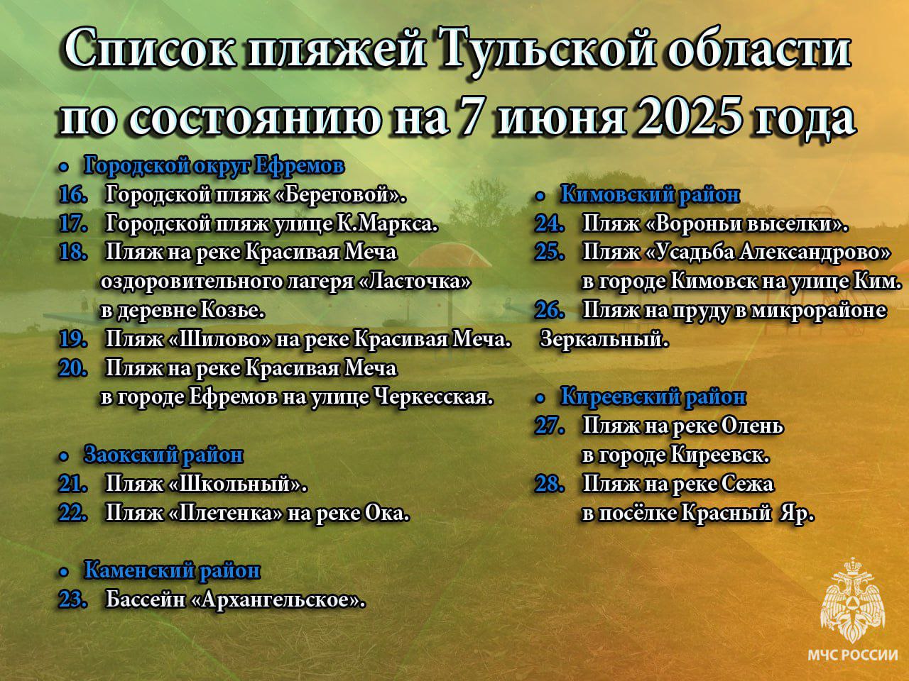 Официально разрешенные пляжи в Тульской области