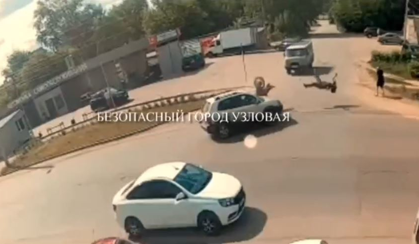 В Узловой на Заводской улице произошло ДТП с мотоциклом и водителем легковушки. Видео с камер наблюдения опубликовали очевидцы в группе «Тула Жесть» во «ВКонтакте».