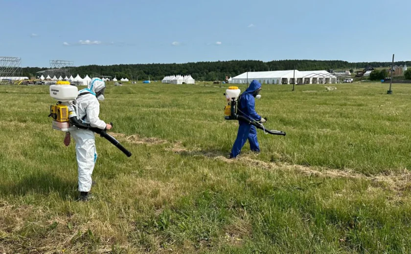 Территорию фестиваля «Дикая Мята» обработали от клещей. Фотографиями процесса поделились организаторы мероприятия в своих соцсетях.