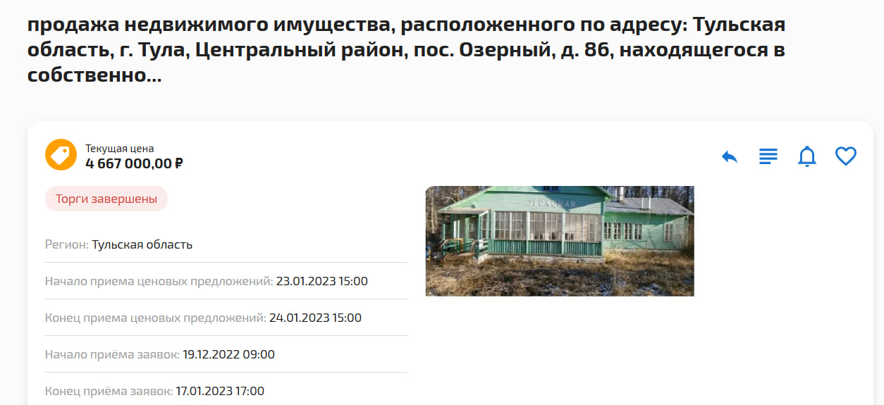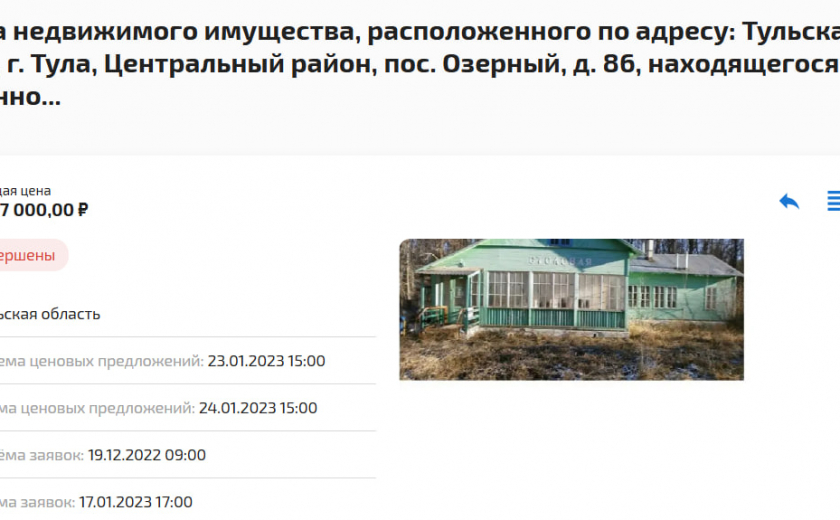 В 2016 году правительство Тульской области выпустило распоряжение, разрешающее Тульскому лесохозяйственному объединению продавать бывший загородный лагерь в Озерном. Это целых 13 зданий — спальные и административный корпуса, столовая, овощехранилище и другие хозяйственные постройки. Так, два года назад имущественный комплекс продавали на торгах за четыре с лишним миллиона рублей.