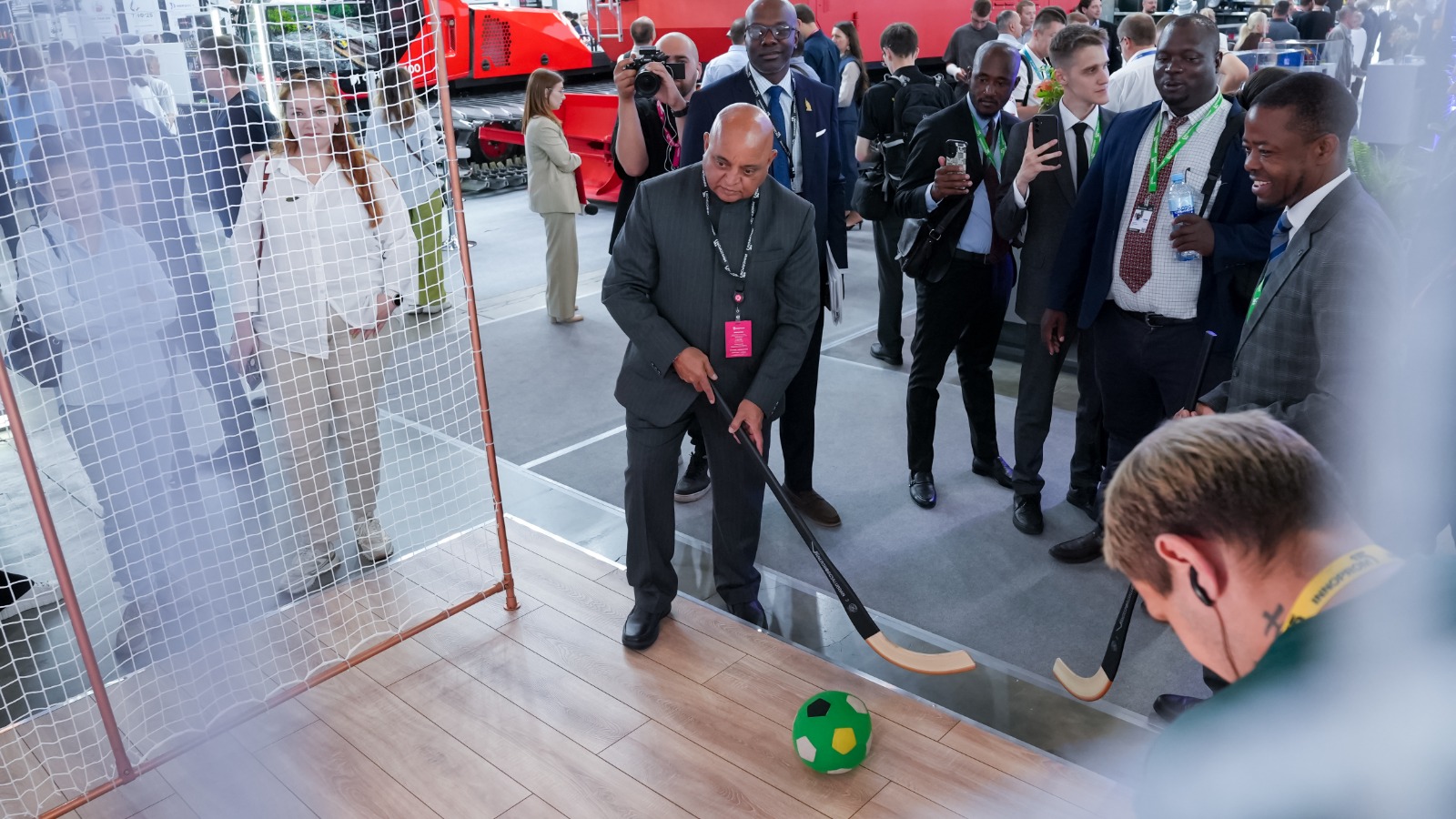 Особый интерес у посетителей выставки вызвала интерактивная зона с возможностью сыграть в хоккей. Развитие спорта в регионе присутствия — одно из социальных обязательств, которые взяло на себя руководство «Полипласта».
