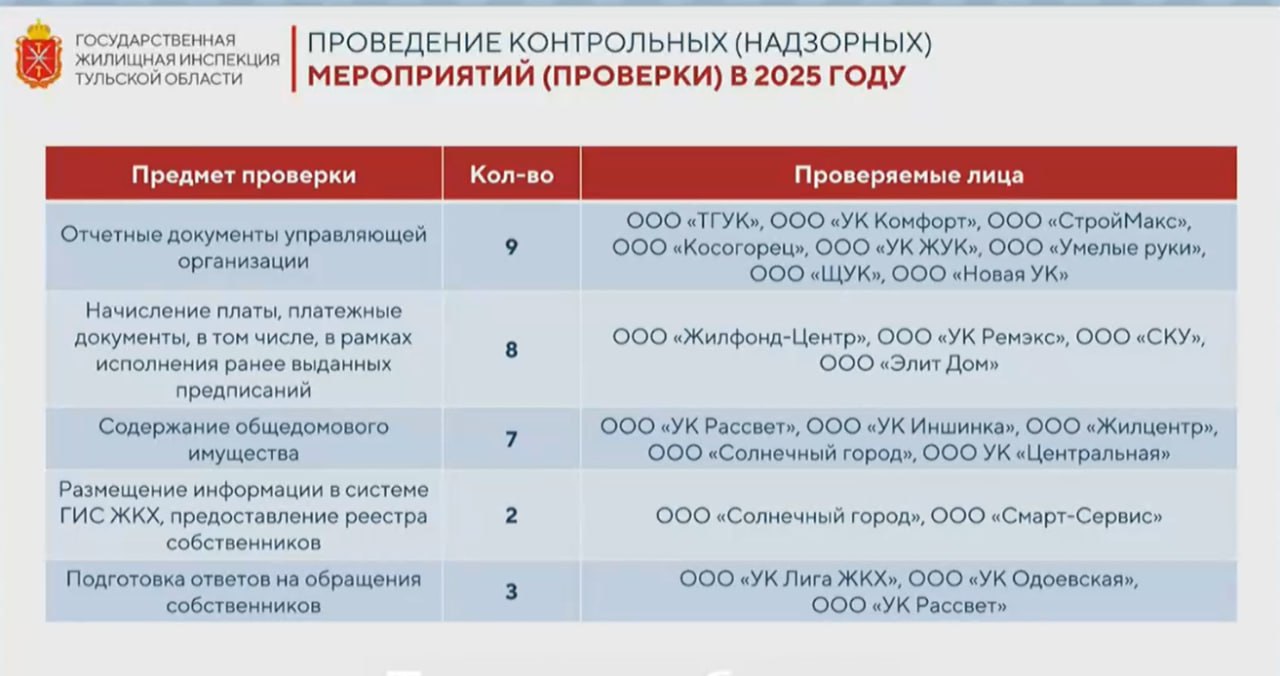 В Тульской области 16 УК имеют высокую категорию риска. Об этом 7 июля на оперативном совещании под председательством губернатора Дмитрия Миляева сообщил начальник ГЖИ региона Леонид Ивченко.