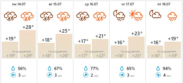 Жителям ЦФО следует приготовиться к ежедневным ливням и грозам. Отразится это и на температуре. В полуденные часы столбики термометров будут показывать +25…+30 градусов.