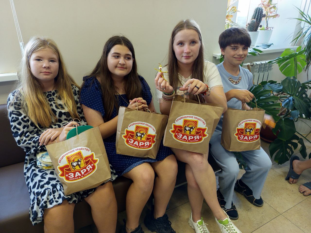 Сегодня ребята побывали в гостях в самом крупном селе ЦФО России — Дедилово, их принимал член Общественной палаты Тульской области Александр Попов на своем предприятии «Заря». Детям показали сельхозтехнику, животноводческий комплекс, накормили сытным и вкусным обедом. Все вместе плели фенечки и делали украшения из бумажных цветов. И вручали детям подарки.