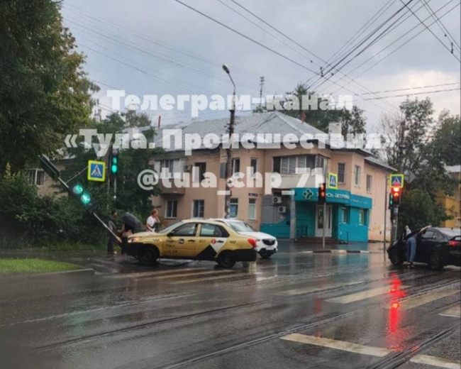 Таксист врезался в светофор на перекрестке Мира и Оружейной