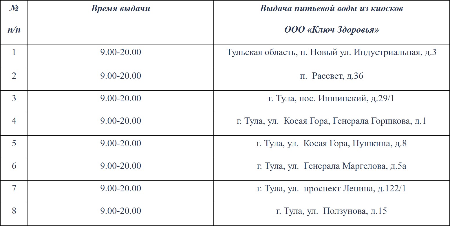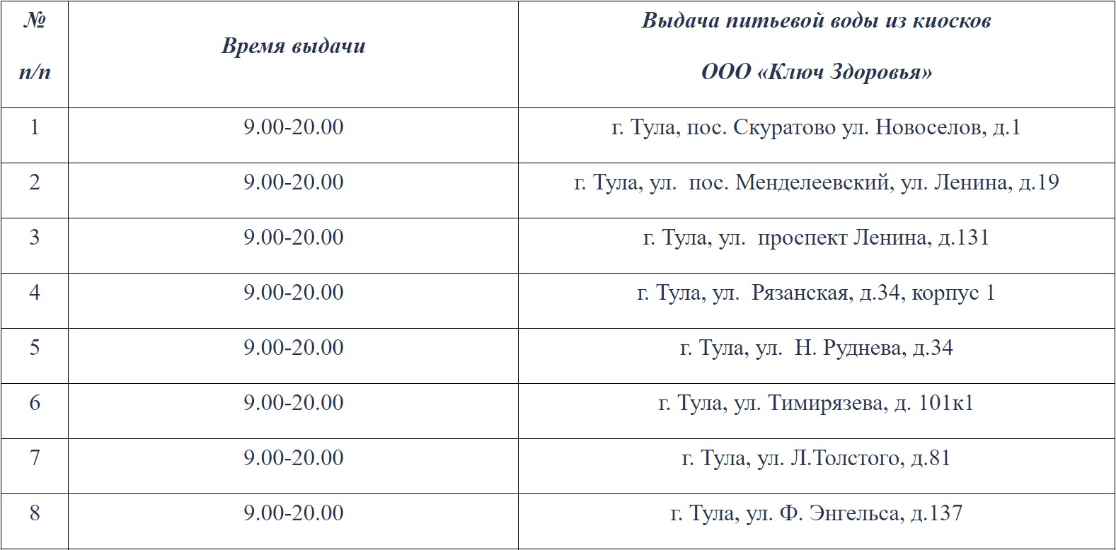 В Туле с 08:00 20 августа по 08:00 21 августа не будет холодной воды в южной части Советского, Центрального и Привокзального округов, южнее Пушкинской улицы, в квартале, ограниченном проспектом Ленина, Рязанской улицей, Новомосковским и Калужским шоссе, в деревне Гостеевке, в районе Зеленстроя, на Косой Горе, в военном городке Берники и одноименной деревне, деревнях Селиховое, Площанки, Барыково, Помогалово, Алекссевка и Ямны.