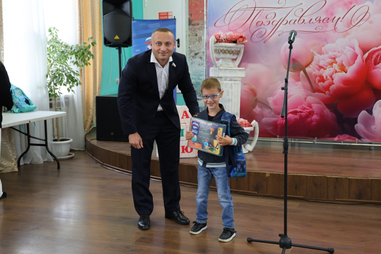 Ребятам вручили ранцы и наборы канцелярских принадлежностей. Депутаты поздравили детей и родителей с началом нового учебного года.