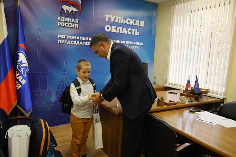 В рамках акции «Собери ребенка в школу» глава города Тулы, руководитель фракции «Единая Россия» Алексей Эрк пообщался со школьниками и вручил им ранцы и канцелярские принадлежности. Один из мальчиков идет в первый класс, другой — в четвертый. Ребята очень любознательные, у них есть увлечения и любимые предметы. Мэр пожалел им хорошо учиться, мечтать и идти к своей цели. У обоих отцы — участники спецоперации.
