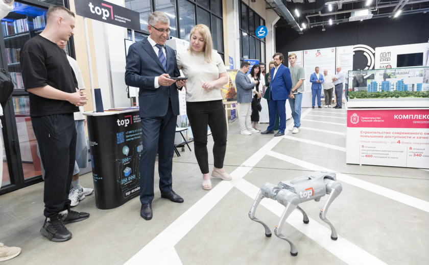 Перед торжественной частью Дмитрий Миляев вместе с членами правительства Тульской области осмотрел выставку застройщиков «Инновация в стройке». На ней были представлены передовые технологии в строительстве от 15 предприятий. В том числе, информационные. Дмитрий Миляев смог лично проверить ряд инновационных разработок застройщиков. Например, посетить рум-тур в одной из тульских новостроек с помощью VR-очков, поуправлять робособакой и протестировать возможности инновационного домофона.