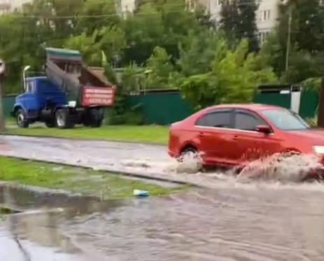 В Куркове — сплошные лужи, машины рассекают по проезжей части, как корабли по морю.