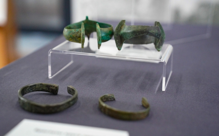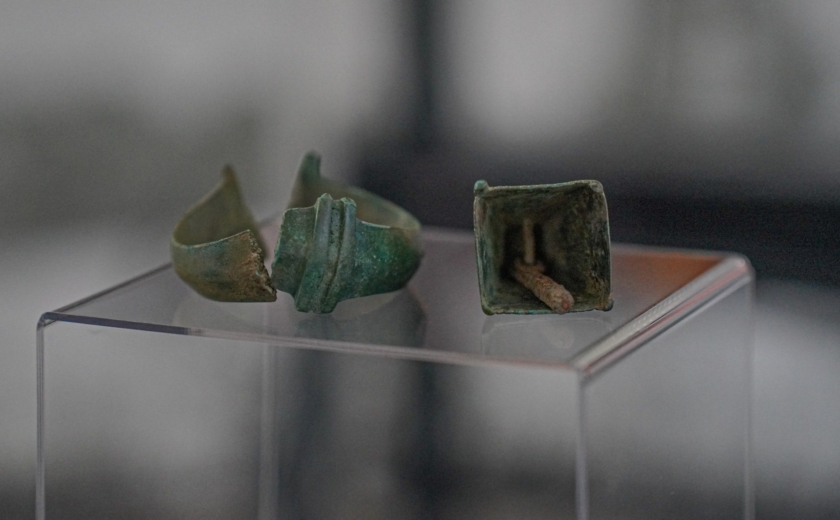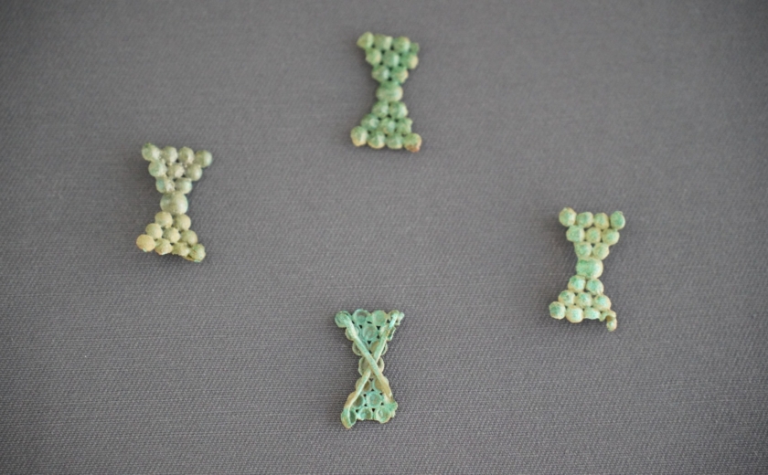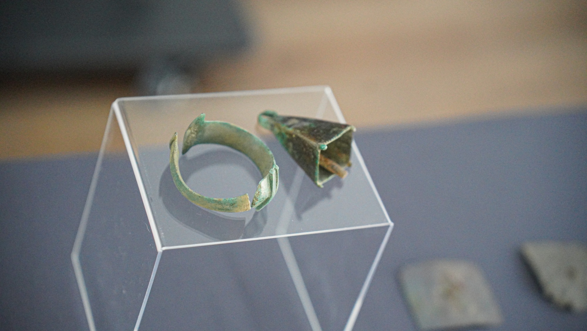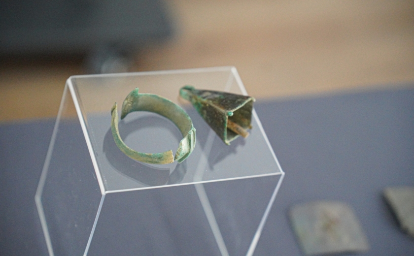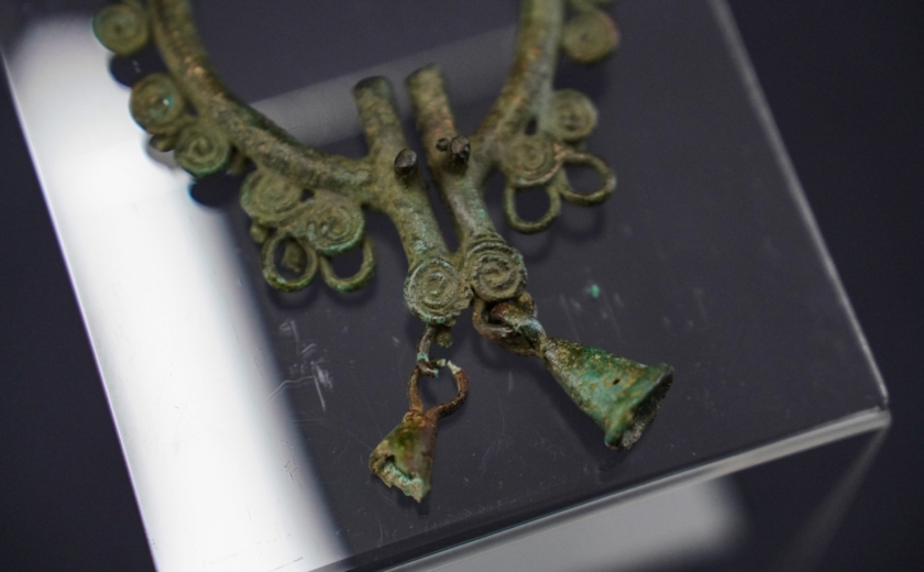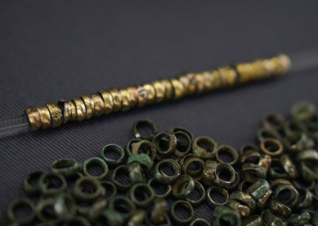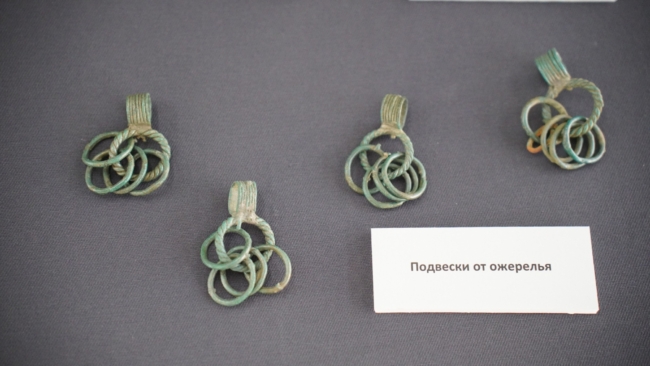 В составе кладов – множество бронзовых украшений и деталей костюма: подвески от ожерелья, нагрудные нагрудные застежки, браслеты и т.д. На прошедшей в среду пресс-конференции журналистам представили далеко не все находки, а только те, что удалось привести в порядок за столь короткое время. Это больше шестидесяти отдельных предметов и сотни бронзовых колечек-пронизок, которые собирались на кожаном шнурке (в некоторых реставраторы находили фрагменты шнурка) и, скорее всего, были чьим-то украшением.