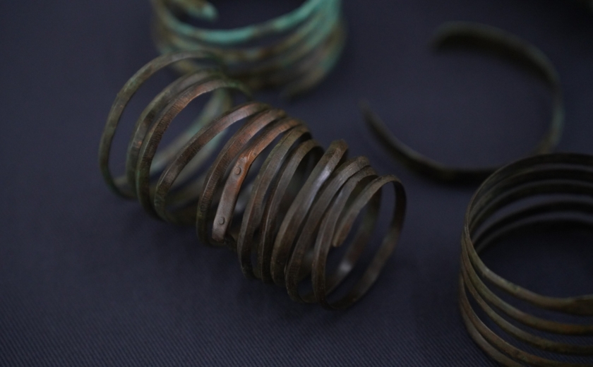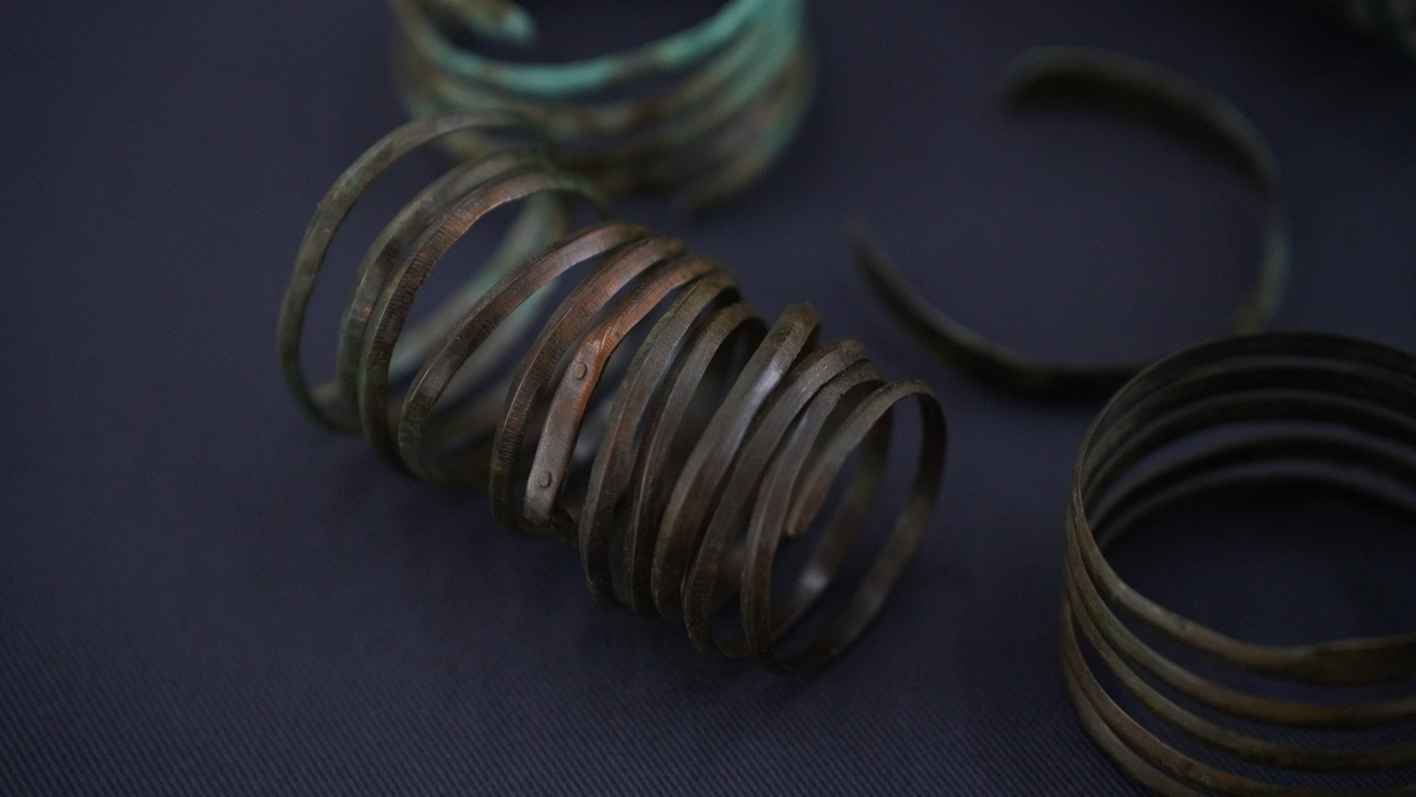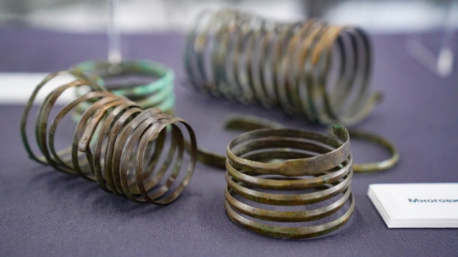 Многовитковые браслеты очень похожи на те, что были найдены в сарматском кладе (об этой истории мы писали здесь, прим. редакции). Только здесь они имеют треугольное сечение и завершаются завитком. «Стилистика похожа. Такие браслеты очень долгое время были для знатных людей символом власти. Несмотря на то, что люди менялись, форма оставалась», — рассказывает Алексей Воронцов.