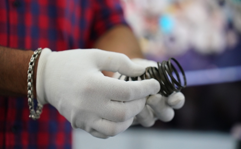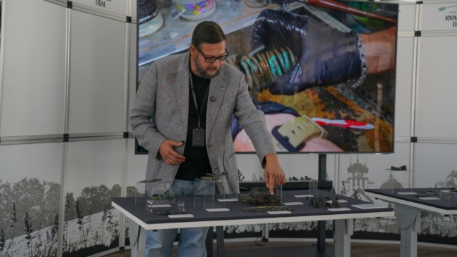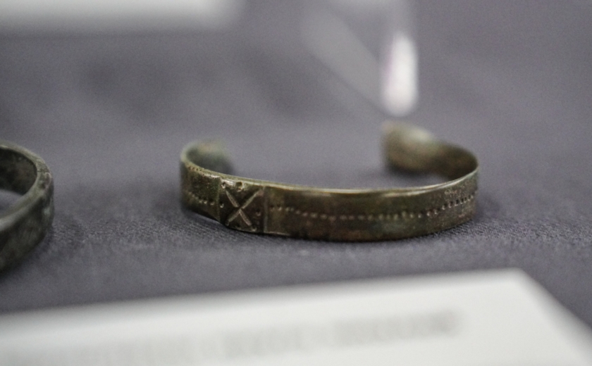 «Эти браслеты были вставлены один в другой. Нам пришлось повозиться с ними. Вот видите, на одном из этих браслетов есть пластинка с двумя клепками? Это означает, что предмет уже был в ремонте», — добавляет заведующий отделом реставрации и консервации фондов Государственного музея-заповедника «Куликово поле», реставратор высшей категории Виталий Шмелев.