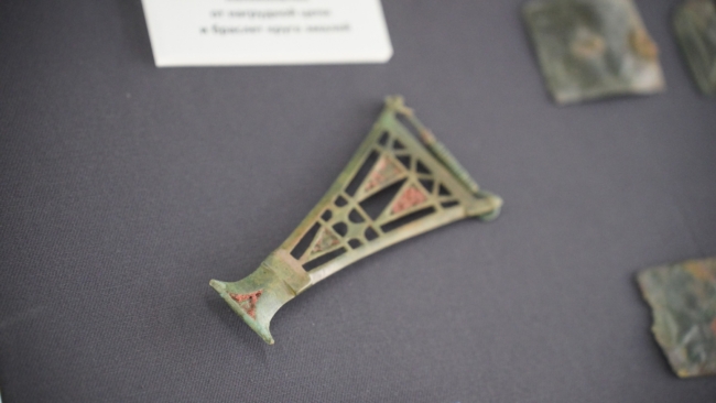 Внимание археологов привлекли так называемые восточноевропейские выемчатые эмали. Объясняем: часть предметов покрыты разноцветной, чаще всего красной, стеклянной эмалью. Она заливалась в специальные выемки, отсюда и название.