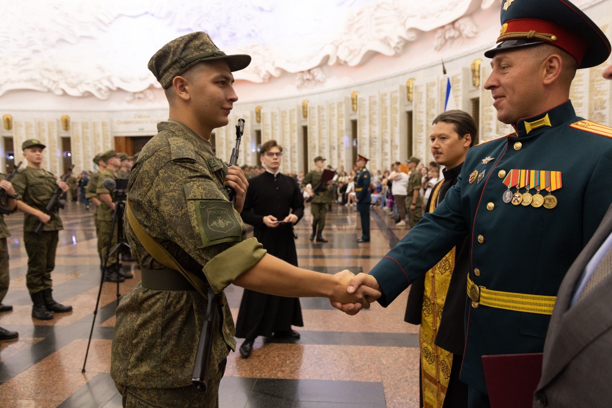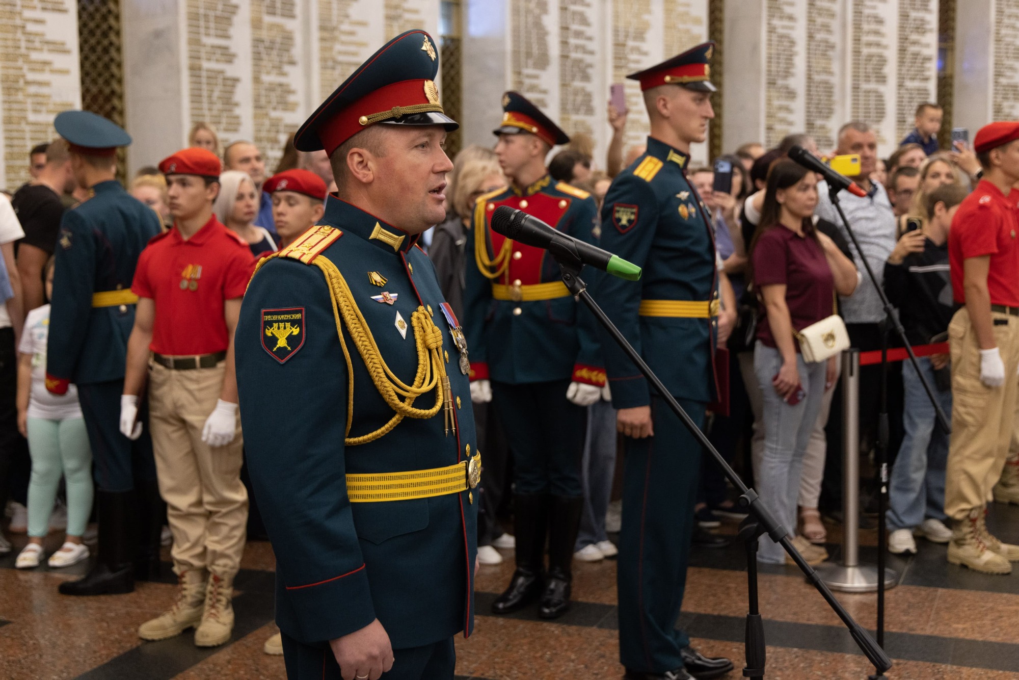 Молодые бойцы дали клятву быть верными Отечеству, защищать свободу и независимость страны. Церемония прошла в Зале Славы Музея Победы, где высечены имена около 12 тысяч Героев Советского Союза и Героев России.