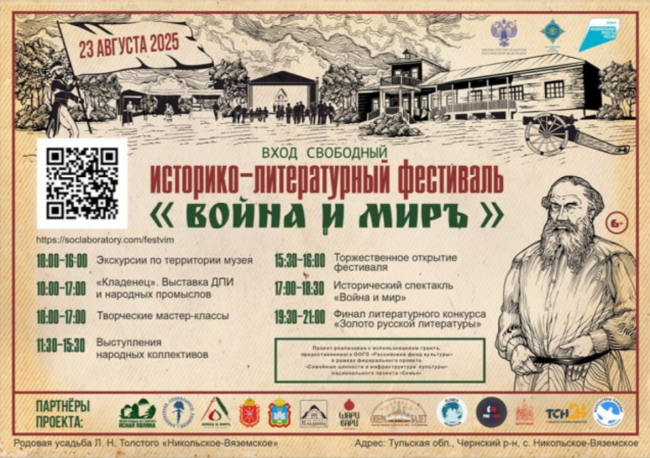В конце августа, 23-го числа, в селе Никольское-Вяземское состоится V Историко-литературный фестиваль «Война и Мир». Мероприятие приурочено ко дню рождения Льва Толстого, который отмечается 28 августа по старому стилю.
