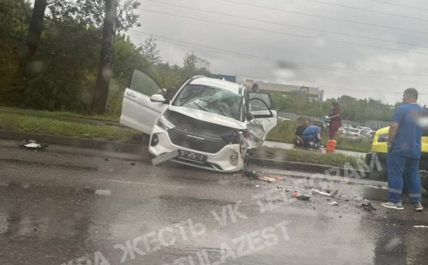 В Туле на Рязанской улице произошло серьезное ДТП. По предварительным данным ГИБДД, около 15:40 водитель КамАЗа не справился с управлением. Грузовик выехал на встречную полосу и столкнулся с автомобилем «Хавал», который двигался навстречу.