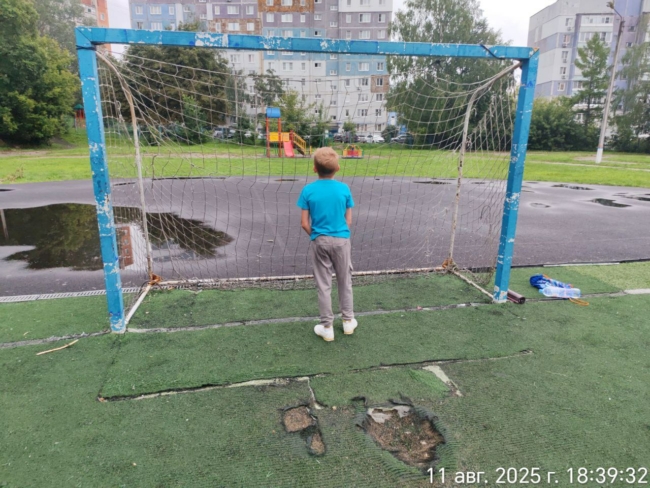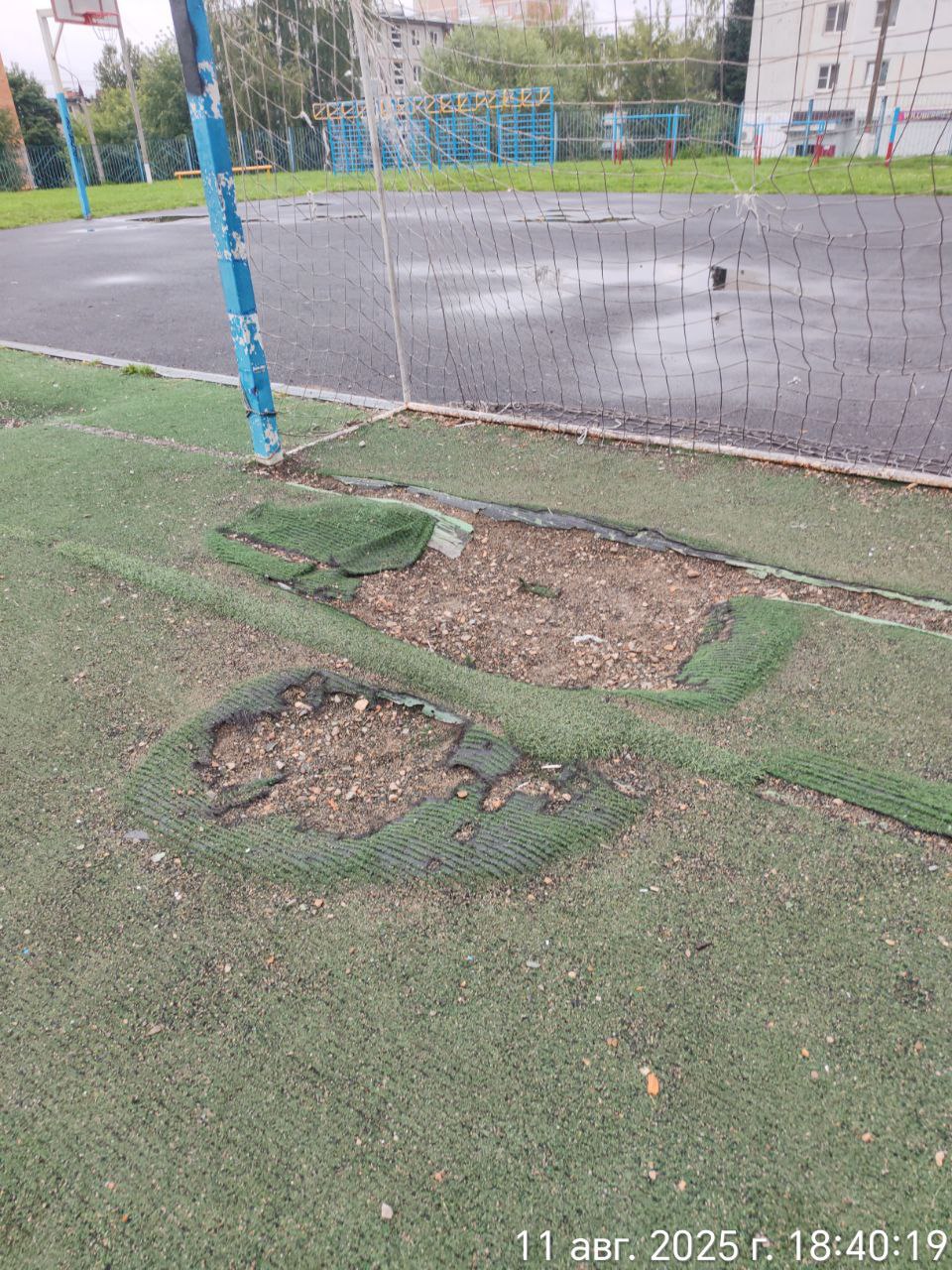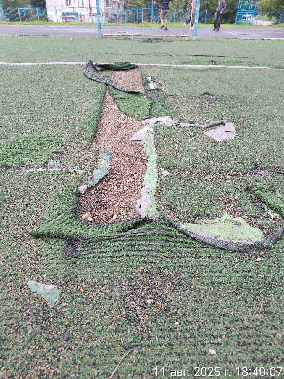 «Я вижу, что дети используют данный стадион с грубыми нарушениями — я сам председатель МКД и знаю, какие должны быть нормативы по мягкому покрытию и спортивному оборудованию, у нас я лично за этим слежу», — отмечает туляк.