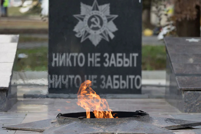Мужчина уперся ногами в мемориал и пытался оторвать прутья. Видео было снято 27 августа.