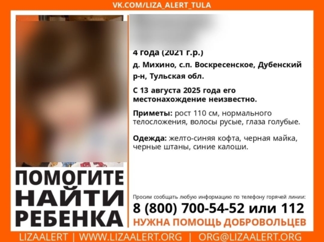 В правоохранительные органы 13 августа 2025 года поступило сообщение о пропаже четырехлетнего мальчика.