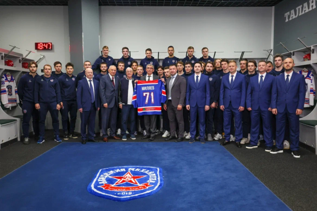 «Желаю вам, «Михайловцы», хорошего выступления в новом сезоне. Смотрю на вас — здоровые, крепкие ребята. Таким любые высоты по плечу. Только вперед и только к победам!» — подчеркнул Борис Петрович Михайлов, обращаясь к хоккеистам.