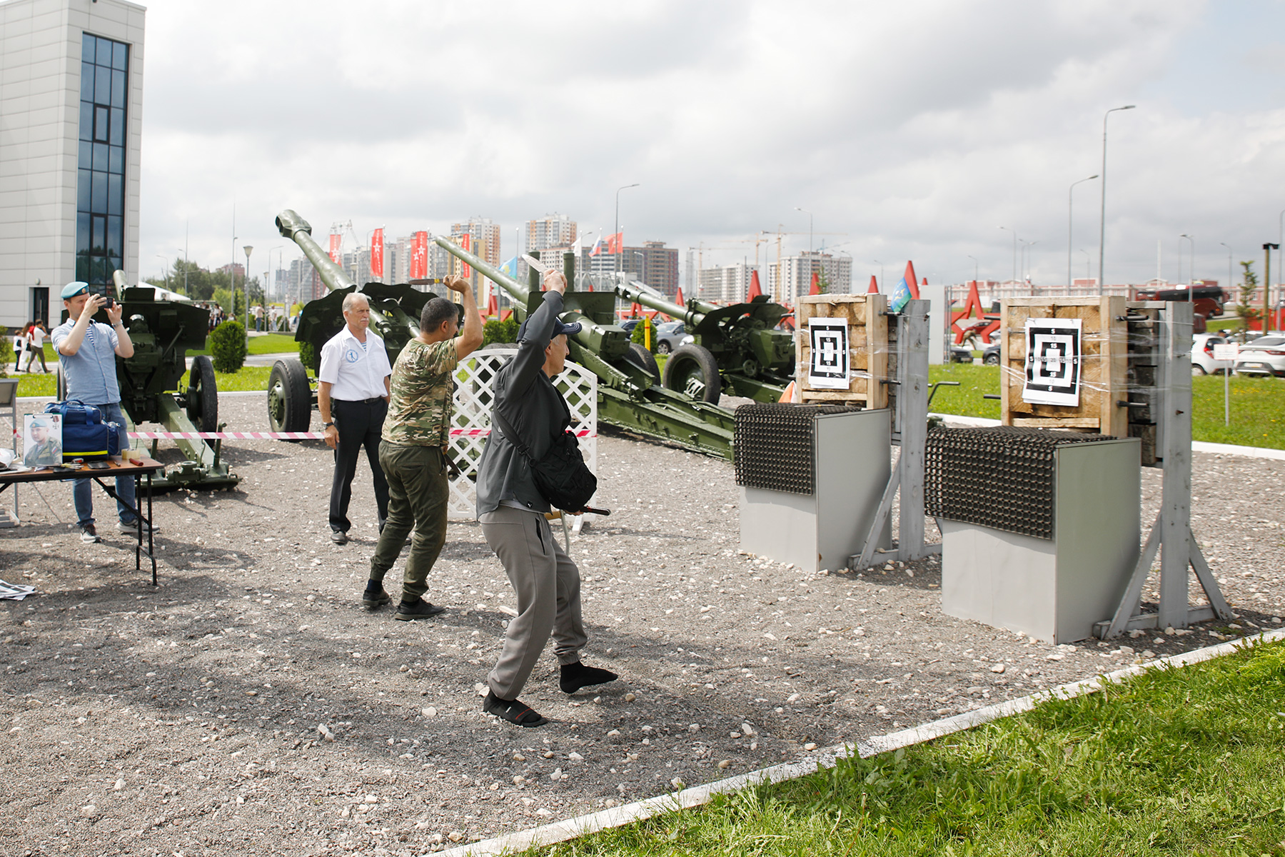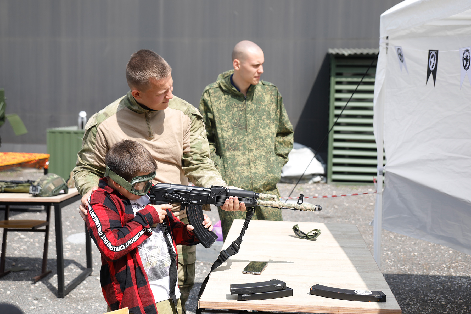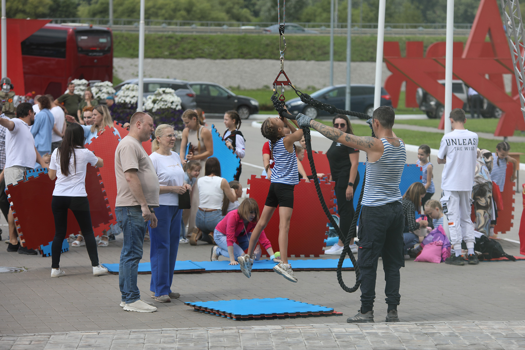 С 17:00 на Казанской набережной будет работать полевая кухня, тир, интерактивные площадки по изготовлению сухого душа и плетению маскировочных сетей. Также пройдут мастер-классы по изготовлению брошей из лент в цвете триколора, вязанию морских узлов, сборке и разборке оружия, челлендж «Кто сломает арбуз», забег беловелов в тельняшках, конкурс по запуску самодельных самолетов.