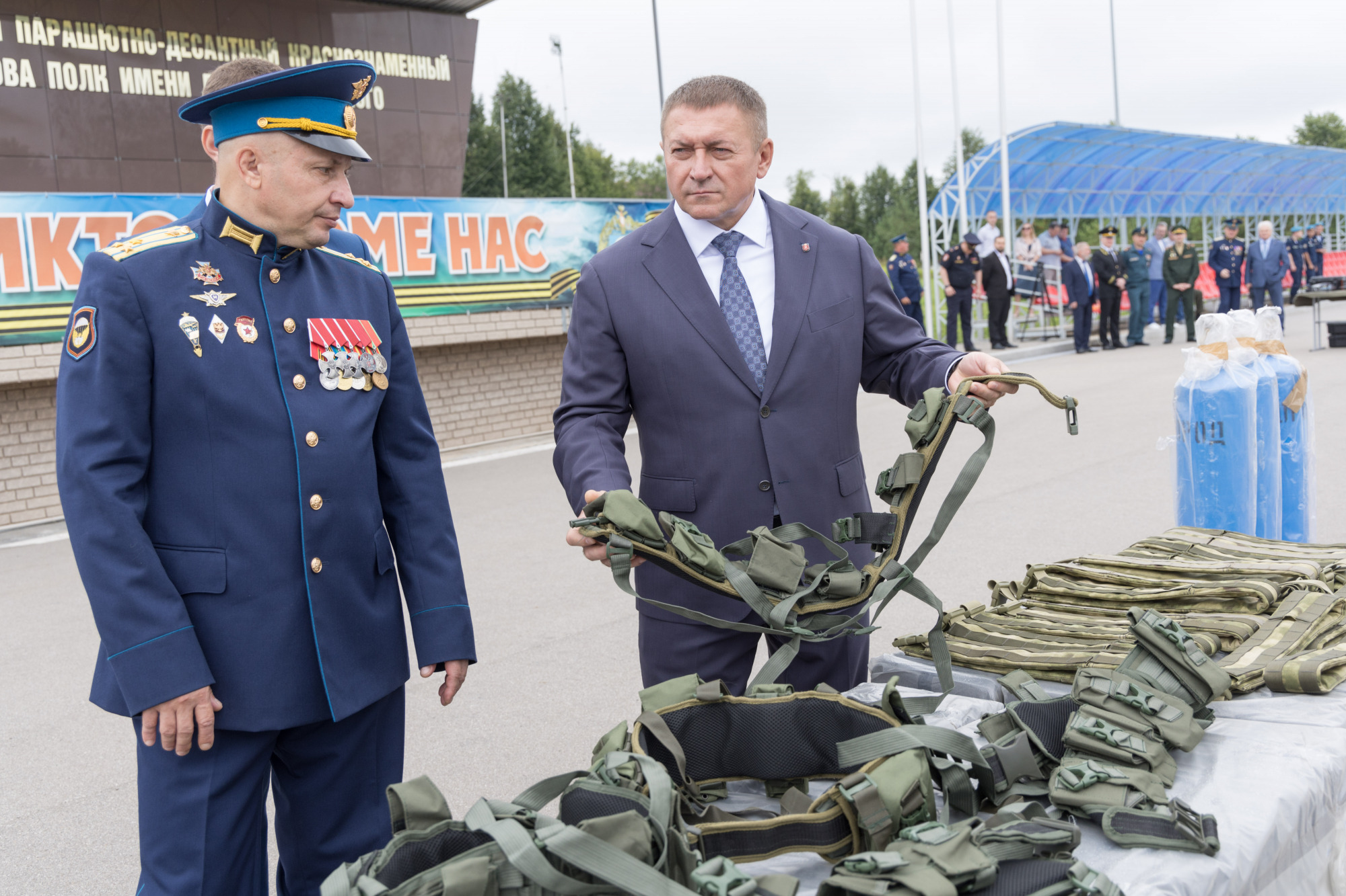 Замгубернатора вручил десантникам региональные награды «Доблесть и слава». На территории полка также прошла передача имущества и обмундирования в зону СВО, состоялся праздничный концерт.