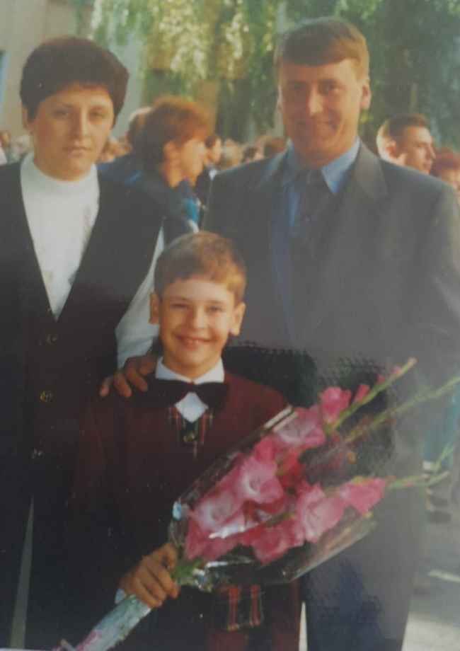 «Уходя в первый класс, я будучи ребенком чувствовал колоссальную ответственность перед родителями и бабушкой с дедушкой, что я должен учиться хорошо и они должны мной гордиться. Кроме этого, я был очень рад своим новым знакомствам с одноклассниками. Еще мне запомнился одиннадцатый класс, где на торжественной линейке мне доверили пронести на плече первоклассницу».