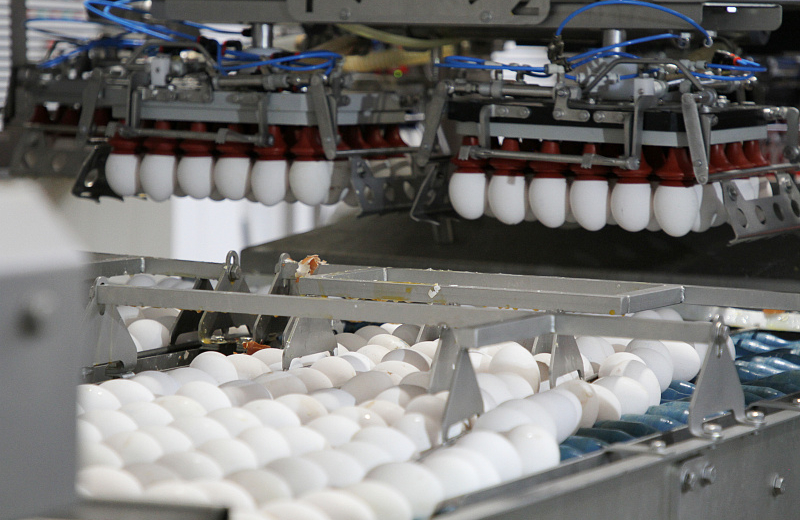 Первая точка на карте в сегодняшнем маршруте – завод ООО «Лето Групп». Предприятие – результат реализации инвестиционного проекта в рамках соглашения, подписанного на XXI Санкт-Петербургском международном экономическом форуме. Здесь выпускают продукты глубокой переработки яйца: сухой и жидкий желток, белок и меланж. Они используются во многих отраслях пищевой промышленности.
