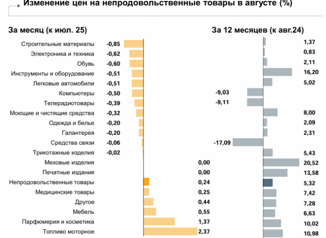 С учетом сезона рост цен в августе замедлился. Причиной этому стал тариф на услуги ЖКХ, который не менялся в этом месяце, и низкий спрос на непродовольственные товары.