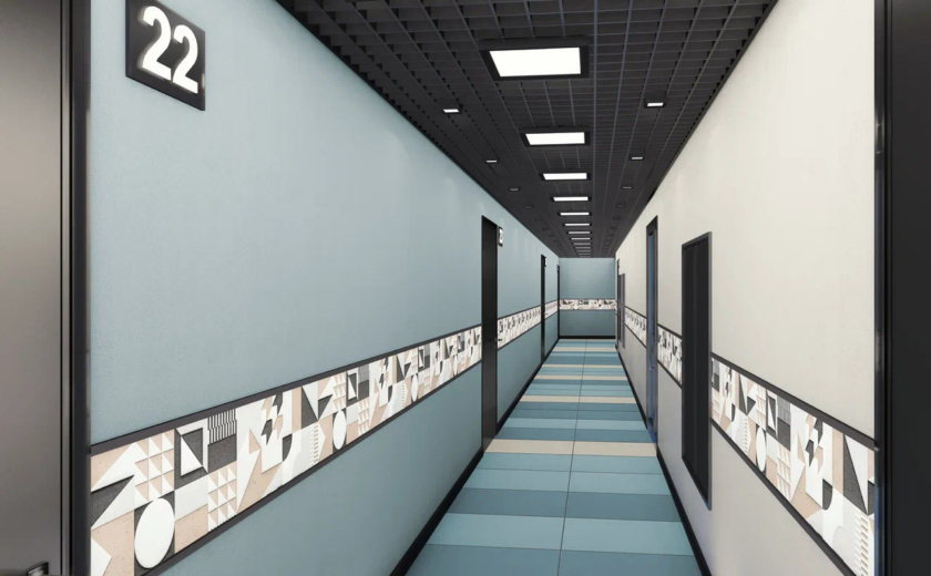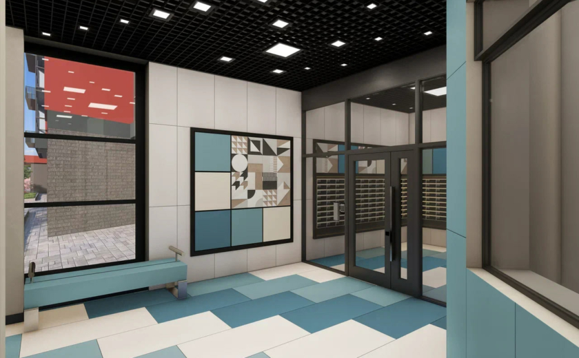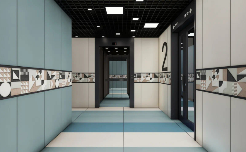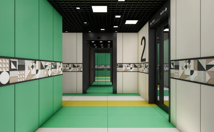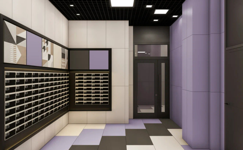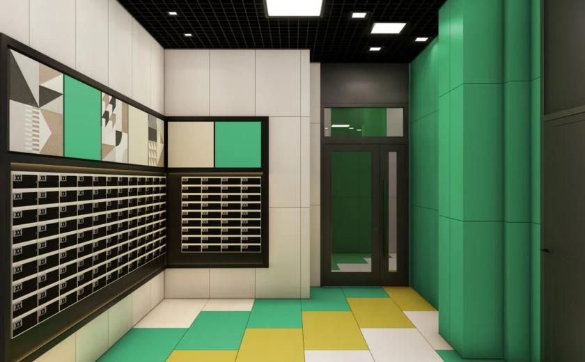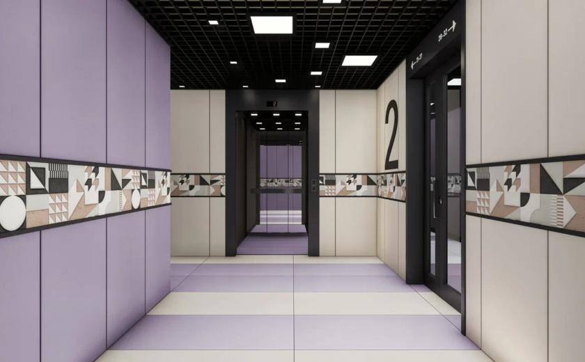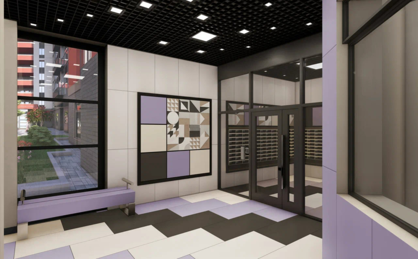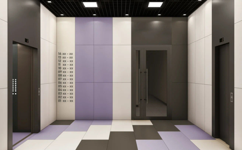 Кроме того, в новом доме № 30 застройщик вдохнул в дизайн мест общего пользования свежую идею. Благодаря акценту на трех пастельных цветах: сиреневом, сине-сером и зеленом, получился уникальный и сбалансированный стиль.