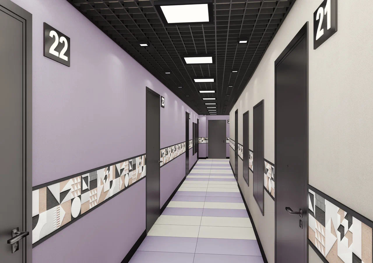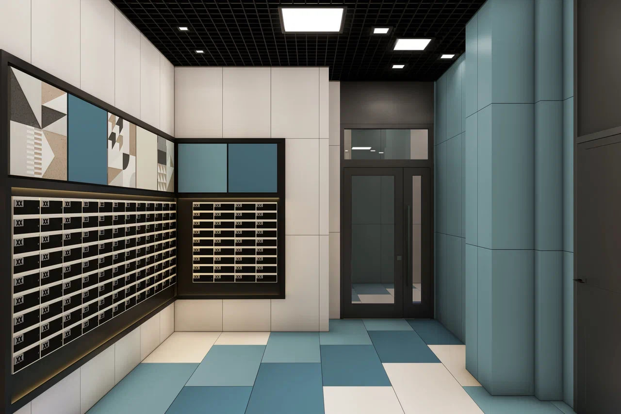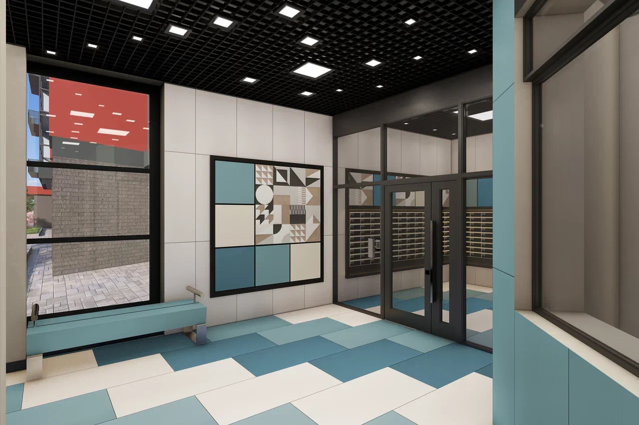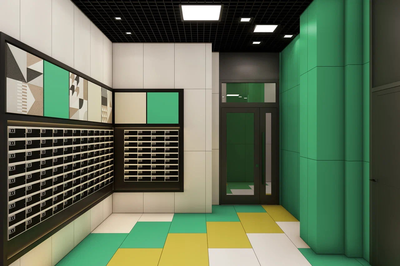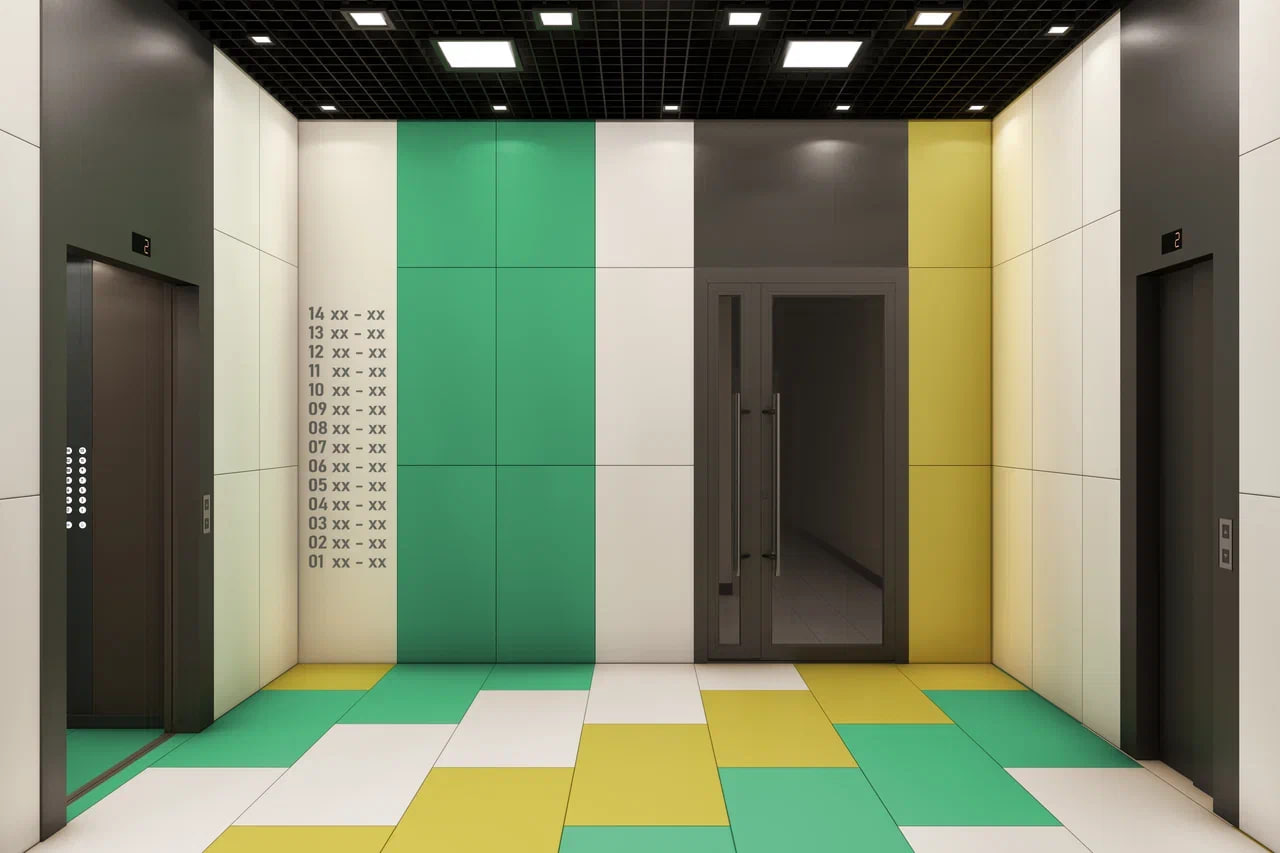 Кроме того, в новом доме № 30 застройщик вдохнул в дизайн мест общего пользования свежую идею. Благодаря акценту на трех пастельных цветах: сиреневом, сине-сером и зеленом, получился уникальный и сбалансированный стиль.