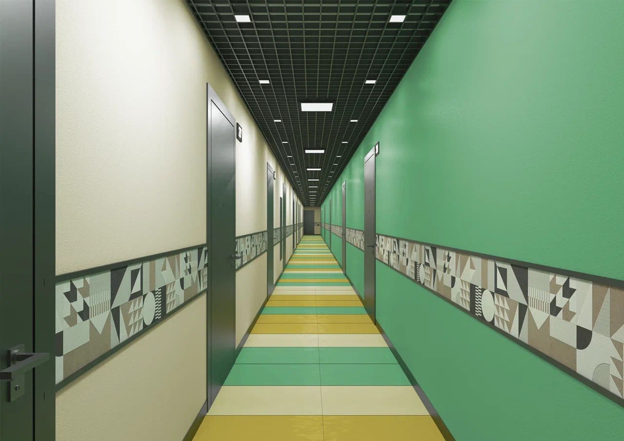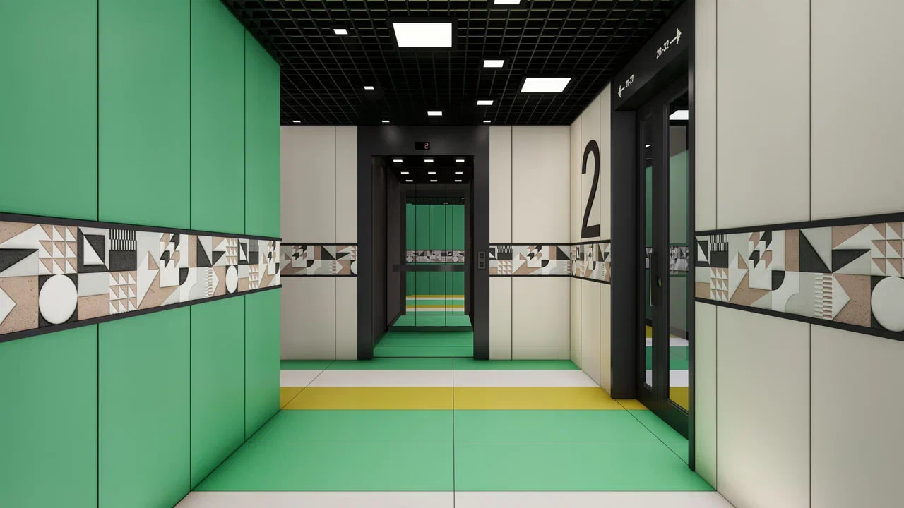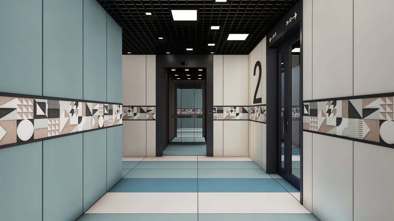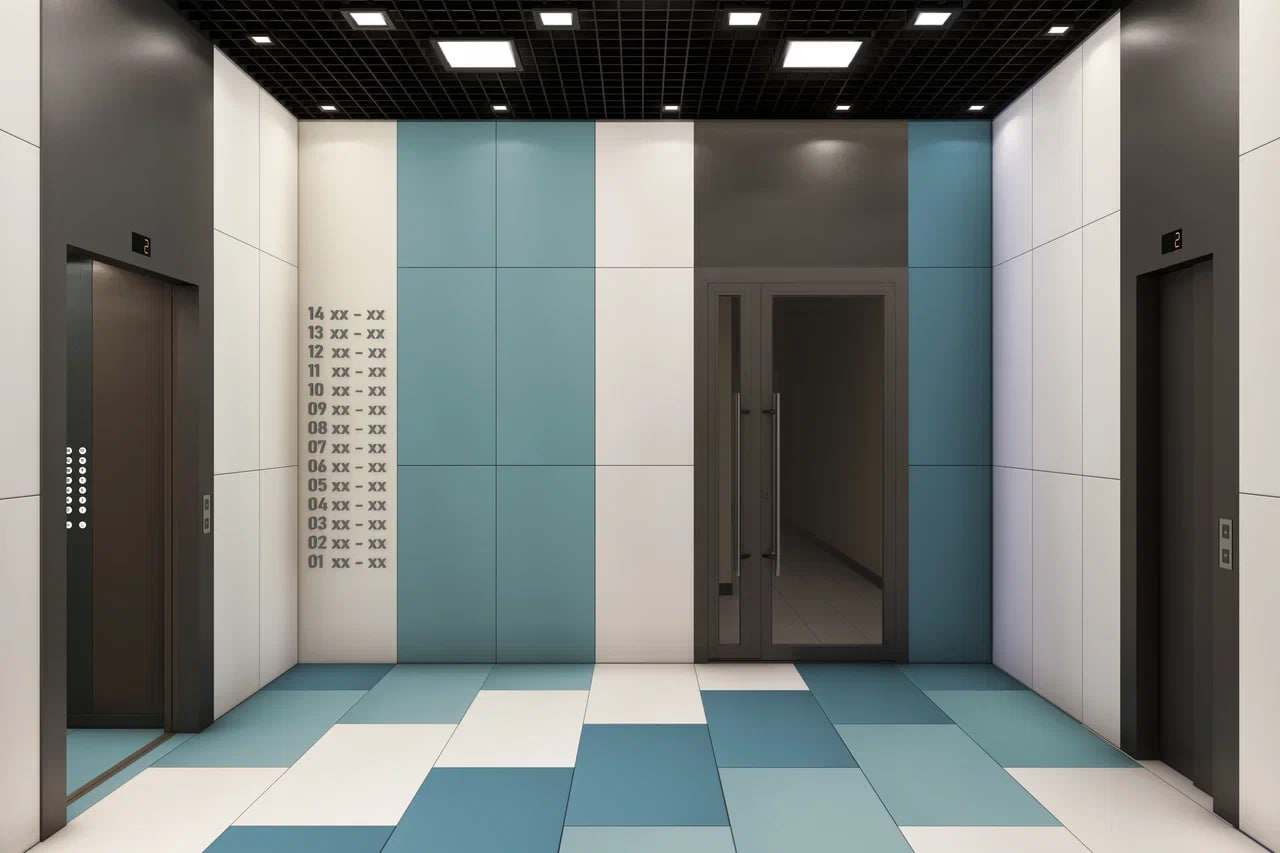 Кроме того, в новом доме № 30 застройщик вдохнул в дизайн мест общего пользования свежую идею. Благодаря акценту на трех пастельных цветах: сиреневом, сине-сером и зеленом, получился уникальный и сбалансированный стиль.