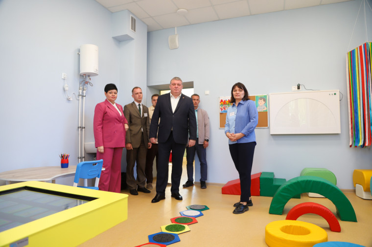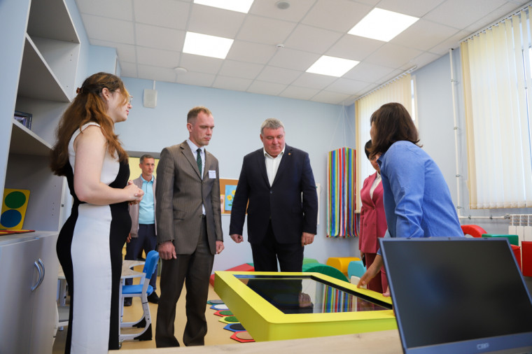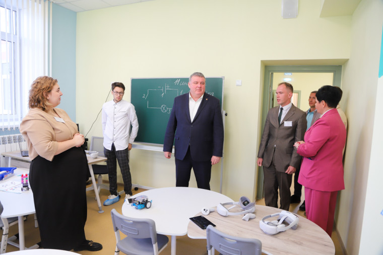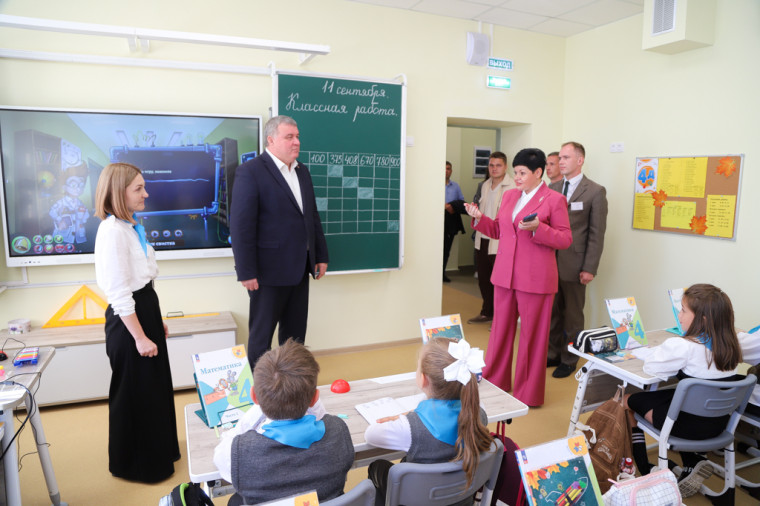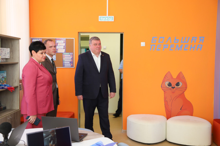 Глава администрации города осмотрел обновленное здание школы, посетил спортивный и гимнастический залы, учебные классы, кабинет психолога, столовую, центр детских инициатив и площадку правил дорожного движения. В центре детских инициатив для всестороннего развития учеников работает отделение «Орлята России». На специально оборудованных площадках в здании школы и на пришкольной территории ребята могут изучать правила дорожного движения.
