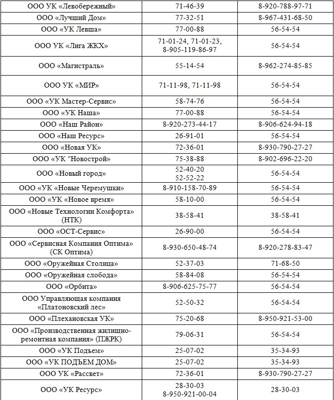 Телефоны горячих линий ресурсоснабжающих организаций