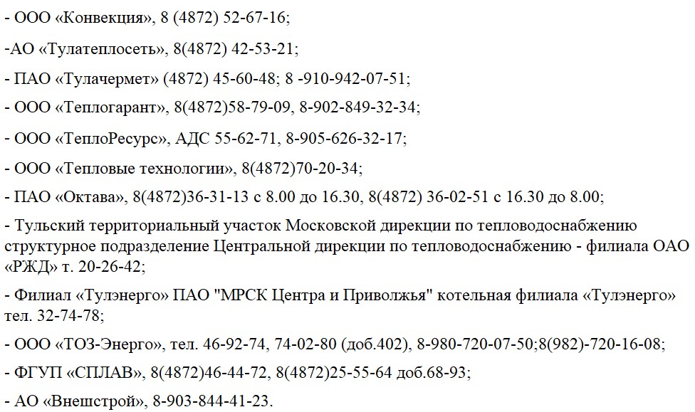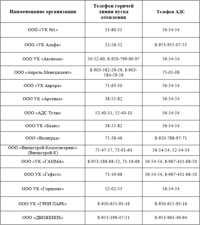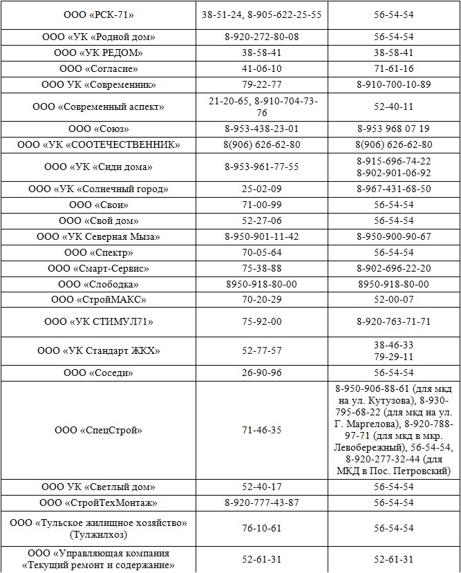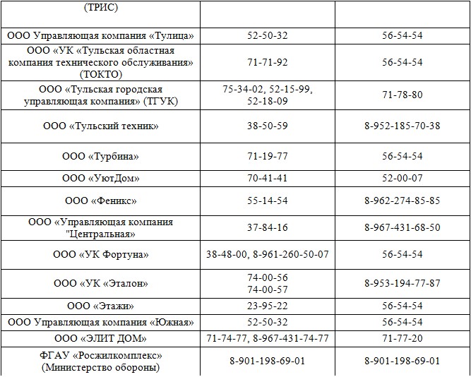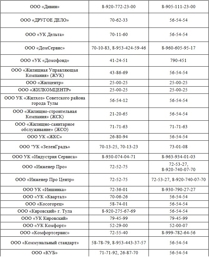 Телефоны УК Тулы