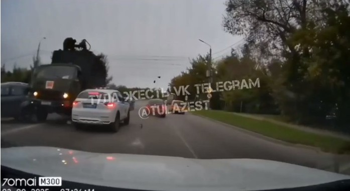 Появилось видео с места массового ДТП на улице Рязанской в Туле. На кадрах видно, как КамАЗ столкнулся с рядом легковых автомобилей.